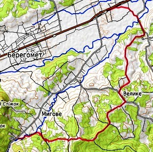 Myhowe - vom "Kurort" zurück über den Myhiwka-Bach - nach rechts auf dem Feldweg am Bach entlang - Holzsteg nach rechts über den Bach - wieder nach links, weiter abwärts auf dem bachparallelen Weg, zunächst durch Weideland, dann durch Wald - am Waldrand nach rechts über die Weide hoch zum Fahrweg - nach rechts an der Villa Chutir Solonez vorbei - durch den Wald - Wegkreuzung, nach links Richtung O - am Gehöft vorbei - Graspfad weiter Richtung O - durch den Wald bis zum Fahrweg in der Nähe der Gruppe von drei Gehöften - dem Fahrweg nach rechts und gleich wieder nach links folgen - Richtung O auf dem Fahrweg, alle Abzweigungen ignorieren - in den Wald bis von rechts ein Fahrweg einmündet - links halten Richtung NO - diesem Weg in Gehrichtung folgen bis zur Straße im Ort Welyke - hier links auf der Straße Richtung NW - nach 600 m nach rechts auf den Fahrweg - nach 250, in der Linksbiegung des Fahrwegs geradeaus dem Feldweg folgen, der bald wieder auf den Fahrweg mündet - ihm Richtung N, später NO folgen bis zur Straße - nach links und auf der Straße Richtung NW - lange Brücke über den Sereth (schöner Blick auf den Wildfluss) - links halten, Richtung Bahnlinie - an ihr entlang bis zu Querungsmöglichkeiten zur Straße, spätestens am Bahnhof - Lukawzi (Übernachtung? - evtl. im Market Taschka fragen, Bahnstation, Bushaltestelle)