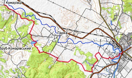 Lukawzi - zurück Richtung Sereth - nicht nach rechts über die große Brücke sondern die Straße queren und linksufrig ca. 1,3 km auf Fahrspuren flussabwärts bis zur nächsten Brücke - Fluss queren - ab jetzt wäre eine Wegbeschreibung zu kompliziert, deshalb folgende Tipps: 1. auf der ganzen Teilstrecke im Prinzip die O-Richtung beibehalten, 2. von dieser Richtung höchstens wenige hundert Meter nach links Richtung Flussniederung oder nach rechts Richtung bewaldete Hügel abweichen, 3. Karte, Kompass und/oder GPS-Gerät benutzen - so erreicht man Komariwzi (Übernachtung?, Bahnstation in 1,5 km Entfernung, Bushaltestelle?, Privattaxi)