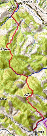 Ploska - im Putylka-Tal auf dem Fahrweg aufwärts Richtung SW - nach etwa 1,3 km nach links - auf dem Fahrweg Richtung SO durch den Wald aufwärts - nach 750 m am Waldrand den Fahrweg verlassen und auf Naturwegen geradeaus weiter Richtung SO, dann SW - nach links durch den Wald aufwärts - auf dem Hügelkamm Richtung SW - in den Wald, wo wir auf den Waldweg NO des Holyj Hrun (1314 m) treffen - hier nach links und auf dem Waldweg Richtung SO - auf der nächsten Erhebung (1240 m) vor (Waldweg, länger) oder nach (kürzer, teilweise weglos) nach rechts Richtung SW hinunter ins Tal des Rapotschiw-Bachs - auf dem Holzabfuhrweg talabwärts, begleitet von Spuren exzessiven Holzraubbaus - nach etwa 2 km rechts auf Holzabfuhrweg - nach 600 m nach links, Holzweg aufwärts - auf dem Sattel zwischen Pohar und Rapotschiw nach rechts Richtung SW, viele Kahlhiebe, Orientierung erschwert durch zuwachsende Holzwege - etwa 1 km nach dem Sattel Holzabfuhrweg, nach links Richtung SO in das Tal des Melesch, der in den Suceava-Fluss mündet - Hauptstraße entlang des Suceava - nach rechts, talaufwärts - Schepit (Übernachtung?)