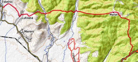 Estelnic - auf Feldwegen Richtung O nach Lutoasa - auf der Hauptstraße nach links zum Ortsrand Richtung Berge - kurz vor dem Ortsende wieder Richtung O auf Feldwegen etwa 150 Höhenmeter aufwärts, meist über Weideland - abwärts ins Lemnia-Tal, das wir in der Nähe der Forsthütte queren - am Gegenhang durch den Wald hinüber ins Tal des Raul Negru, das wir wiederum queren - auf dem bewaldeten Kamm weiter Richtung O hinauf zu den Hochweiden auf dem Mailat - hier Markierung rotes Band, nach rechts Richtung S zum Pasul Oituz (Übernachtung am Passfuß in 1,5 bzw. 2,5 km Entfernung auf beiden Seiten des Passes möglich, ansonsten Privattaxi bestellen)