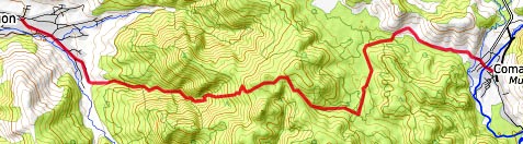 Comandau - vom Rathaus nach W, Brücke über die Basca Mara - auf dem Fahrweg etwa 2,5 km ins Seitental - an der Weggabelung nach links in den Wald - bald wird eine Hochweide erreicht, am Ende auf dem Feldweg nach rechts Richtung W - nach 1,8 km nach rechts Richtung N - nach 400 m biegt der Weg Richtung W und wird zum Holzfällerweg - diese Hauptrichtung W halten wir bei bis ins Tal - Zagon
