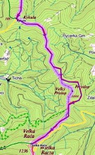 Velka Raca /Wielka Racza - rote Markierung (Grenzweg) - sedlo pod Orlom - Javorina – Kikula - Przegibek - blaue Markierung - Rycerzowa Schronisko (Übernachtung)