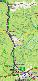 Oravska Lesna – ohne Markierung - an der Kirche Richtung SW in die Straße zum Sägewerk Jasenovska – hier nach links auf den Fahrweg in das Tal der Nova rieka (Richtung SO) – an der Weggabelung im Talschluss links hoch zum Sattel (Höhe 1100 m) - an der 5er-Wegkreuzung im Sattel grob Richtung SO, zunächst auf Waldwegen oder Holzabfuhrspuren - ab Höhe 1200 m weglos oder auf Tierpfaden in Falllinie durch den lichten Wald zum Kamm beim Parac (1325 m) - hier nach links - blaue Markierung - Prislopec – Mincol/Vasilovska hola - Kubinska hola - nach links, rote Markierung . Kubinska hola sedlo - nach rechts, gelbe Markierung – Chata na Kubinskej holi (Übernachtung)