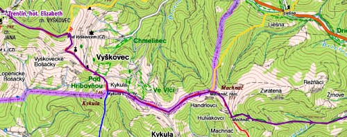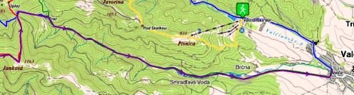 Mikulcin vrch (Biele Karpaty) - rote Markierung - Pod Vyskovcem - Kykula sedlo - Machnac, razc - Machnac sedlo - grüne Markierung - Brusne - Zlatovce - Trencin (Übernachtung, Bahnstation, Bus)