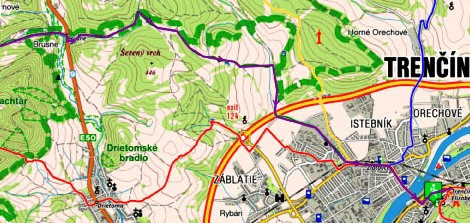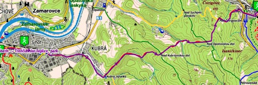 Trencin - rote Markierung - Kubra, kyselka - Nad Kubrianskou dolina - Nad Opatovskou dolina - Pod Cvirigovcom - Trencianske Teplice (Übernachtung)