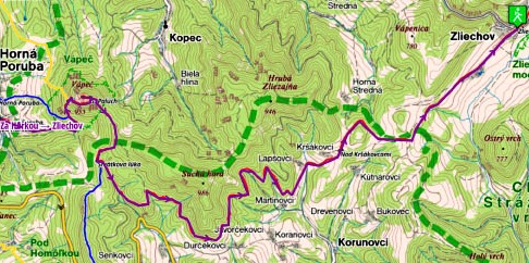 Horna Poruba - rote Markierung - Sedlo Paluch - Vapec, zurück zum Sedlo Paluch - Srvatkova luka - Lapsovci - Nad Krsakovcami - Zliechov (Bushaltestelle)