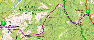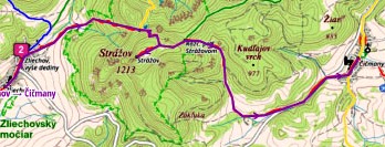 Zliechov - rote Markierung - Zliechov, vyse dediny - Sedlo pod Strazovom - Strazov - Razc. pod Strazovom - Cicmany (Übernachtung)