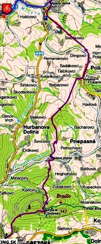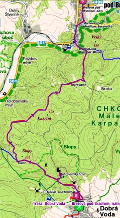 Dobra Voda - rote Markierung - Dobrovodsky hrad - Skalie - Ostra uboc - Brezova pod Bradlom (Übernachtung)