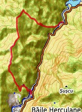 Bei den Campingplätzen in der Nähe des großen Thermalbads beginnt der Wanderweg auf den rechtsseitigen Bergkamm, Markierung gelbes Dreieck - auf dem Kamm nach links, Markierung rotes Band - am südlichen Ende der Hochweide Poiana cu Peri der Markierung blaues Dreieck in Richtung SSO abwärts folgen - in etwa 350 m Höhe nach links Richtung Izvorul Munk - nach rechts hinunter ins Zentrum des alten Kaiserbades Baile Herculane (Übernachtung, Bushaltestelle)