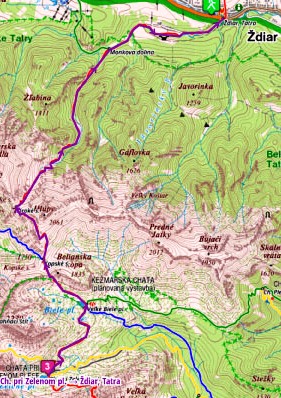 Jalovec / Bobrovecka Vapenica – gelbe Markierung - Jalovecka dolina, ustie - rote Markierung - Tatranska magistrala – Ziarska dolina, ustie - blaue Markierung - Ziarska chata (Übernachtung)